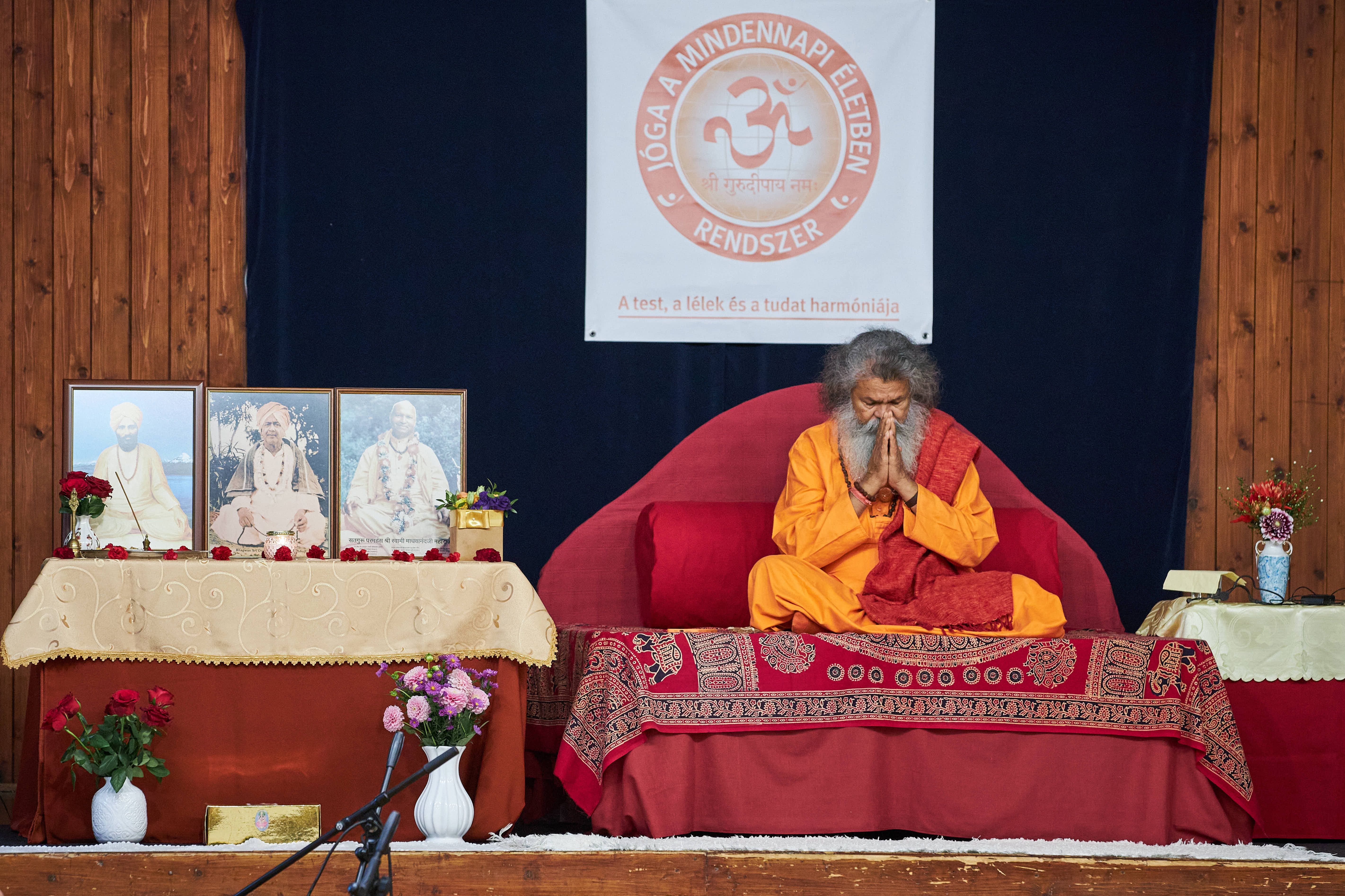 Kedden este a Mester és tanítványai közötti kapcsolatról szólt az előadás. Megismerhettük a Jóga a Mindennapi Életben Rendszer Mesterláncát, amelynek első tagja a Satyajuga idején a Himaláyában élő Sri Alakhpuriji volt, akinek nagyobb méretű képét elsőként most láthattuk Debrecenben. A szerdai előadás ahhoz adott segítséget, hogyan küzdjünk meg a nehézségekkel a jóga gyakorlásának segítségével. A szatszang lehetőséget adott a Mester és tanítványai közötti bensőséges találkozásokra, a pozitív, spirituális energiák megújítására. Ebben nyújt segítséget az a három gyakorlat, amit megtanulhattak a résztvevők: az Ashvini Mudra, az OM zengetése és a Brahmari pranayama. A találkozásnak a 30. évforduló mellett különös jelentőséget adott az is, hogy éppen az ENSZ Nemzetközi Békenapjára esett. Látogatásával a Mester azokkal a tanítványokkal is találkozhatott, akik a vírushelyzet miatt az utóbbi időben nem vehettek részt a nemzetközi programokon. Szeretettel várjuk mihamarabb vissza!